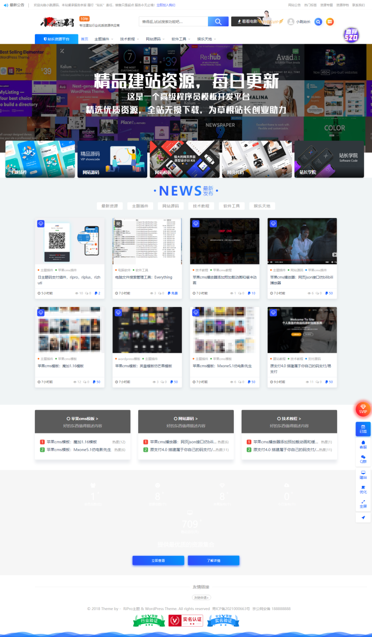 此主题即本站目前使用之主题—极致主题5.6版本。配合ripro8.9,易支付插件即可投入使用。以下为演示截图,也可在本站一一体验。